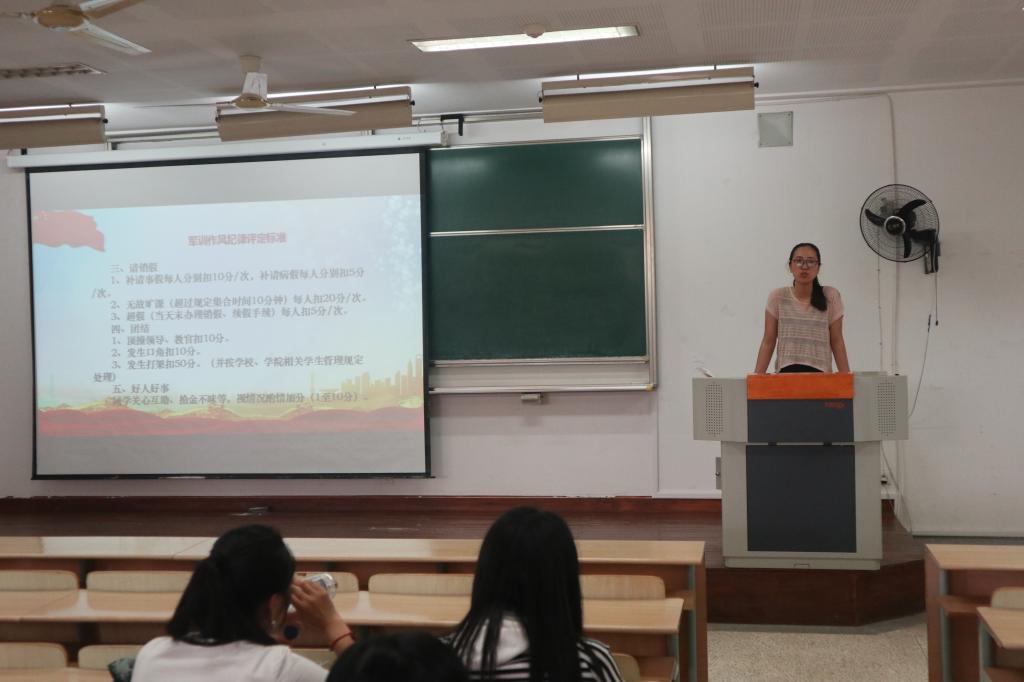 紧接着,冯亚东辅导员从军容风纪、生活制度、请销假规定等方面向全体同学们介绍了军训的日常管理规定,在衣着、仪表、内务、纪律等方面对全体同学提出了要求。并表示,他会和全体同学共同经历这为期16天的军训,陪伴大家一起体验这段“独特”的旅程。