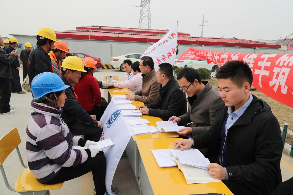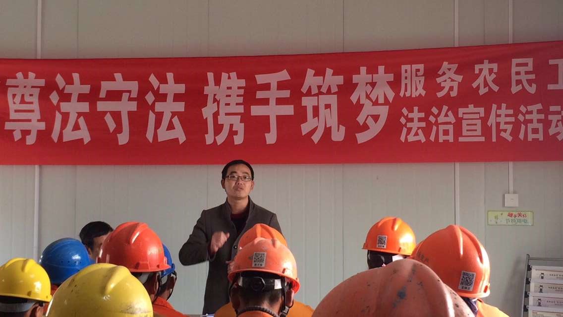 为进一步普及法律知识,提升法律意识,弘扬法治精神,提高农民工群体的法治观念和依法表达合理诉求, 12月4日上午,英国威廉希尔公司官网与英国威廉希尔公司官网工会、无锡市总工会联合开展“遵法守法,携手筑梦”服务农民工法治宣传活动,活动在无锡市二建建设集团有限公司地铁3号线项目部举行,英国威廉希尔公司官网院长助理、副教授梅锦,英国威廉希尔公司官网分团委书记胡博,英国威廉希尔公司官网法学专业研究生周向文、赵明、钟乾敏、钱梦兰参与了本次普法活动。
