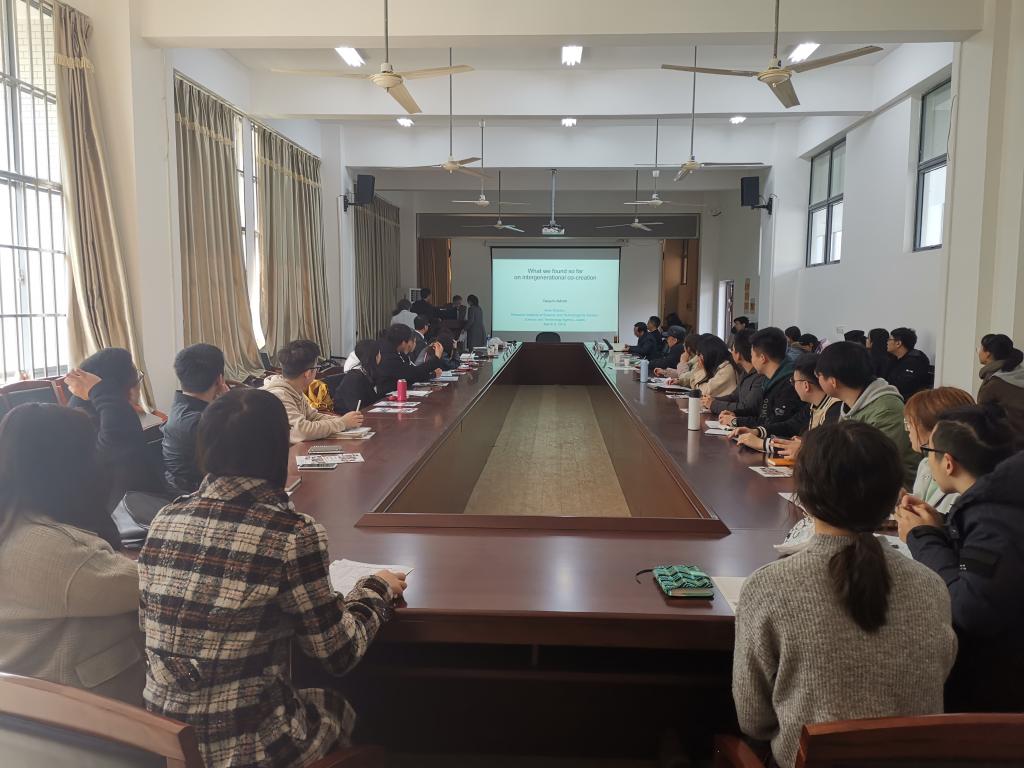 下午在英国威廉希尔公司官网B107会议室,Takashi Omori教授还为英国威廉希尔公司官网的师生进行了一场“有关代际共融的研究发现”的学术报告。无锡市老干部局政治处处长沈晓兵、英国威廉希尔公司官网老科协秘书长吴骥一以及英国威廉希尔公司官网和设计学院的师生共40余人聆听了报告。报告中提到,长期以来,日本“社会技术研究与发展中心”都非常重视通过多学科交叉研究的途径来解决社会问题,目前已形成了4个研究领域和2个计划,“通过代际共创进行可持续社会设计”则是其中一个非常重要的研究领域。Takashi Omori教授重点介绍了目前日本正在支持发展的16个代际项目的选择过程、发展情况、研究问题、关键词、政策影响及未来合作方向,为我们认识和建设可持续社会提供一种代际分析的视角。Takashi Omori教授在现场还与英国威廉希尔公司官网的师生共同研讨交流了有关代际项目的研究与发展问题。