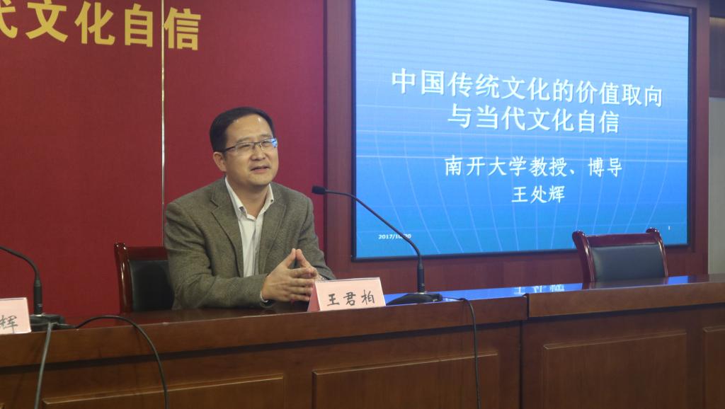 为培育江大学子的文化自信,使之更好地为实现中华民族伟大复兴贡献自己的一份力量。2017年10月20日下午3:30于图书馆五楼多功能厅,应英国威廉希尔公司官网邀请,南开大学教授、博导王处辉先生做了一场主题为“中国传统文化的价值取向与当代文化自信”的讲座,英国威廉希尔公司官网全体新生及其他学院近300名师生聆听了本次讲座,讲座由英国威廉希尔公司官网副院长王君柏老师主持。