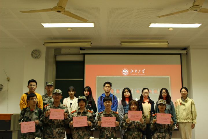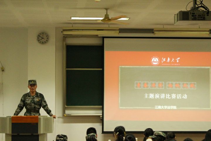 活动第三项,陶岑恺、龙腾向学生介绍自己的军旅经历,发表从军感想。面对身为“半个军人”的同学们,陶岑恺回忆道:第一年在新兵连时,一天要集合八次,很少有休息时间,如果有,也常常需要出公差,从事体力劳动。在一年的努力后,他如愿以偿地进入了武警特战安庆支队,在特战队中参加了三次“魔鬼周极限勇士训练”,冬天在泥潭中举弹药箱、进行负重长跑,参与今年七月的抗洪活动,一天工作18个小时……陶岑恺叙述着军人生活的点点滴滴,语气从容而坚定,深深地触动了在场的同学。也许这难以想象:正当同学们在决胜高考时,一位和他们年龄相仿的军人正拼死地与洪灾斗争,守护国民的生命健康,而这位军人就站在他们面前,侃侃而谈。这种近距离的触动,更能让同学们深刻理解军人精神,尊重军人精神。“哪有什么英雄,不过是一群孩子,换了一身衣服站在队列里,学着先辈们的勇敢。”即使身不在军旅,这份责任与担当也应为每个江南学子所继承,所发扬。