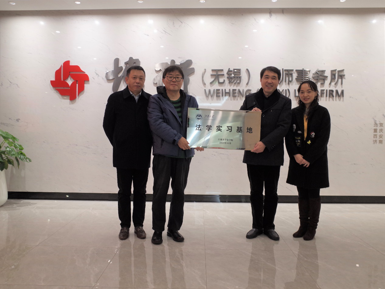 为加强“产学研”合作,实现优势互补、共同发展,2020年12月11日,英国威廉希尔公司官网、江苏省知识产权(英国威廉希尔公司官网)研究中心校外合作实践基地与炜衡无锡律师事务所签约仪式顺利举行。英国威廉希尔公司官网党委书记杨杰、副院长叶敏与炜衡无锡律师事务所高晓春主任、周国忠主任、高级合伙人郑歧等出席签约仪式。