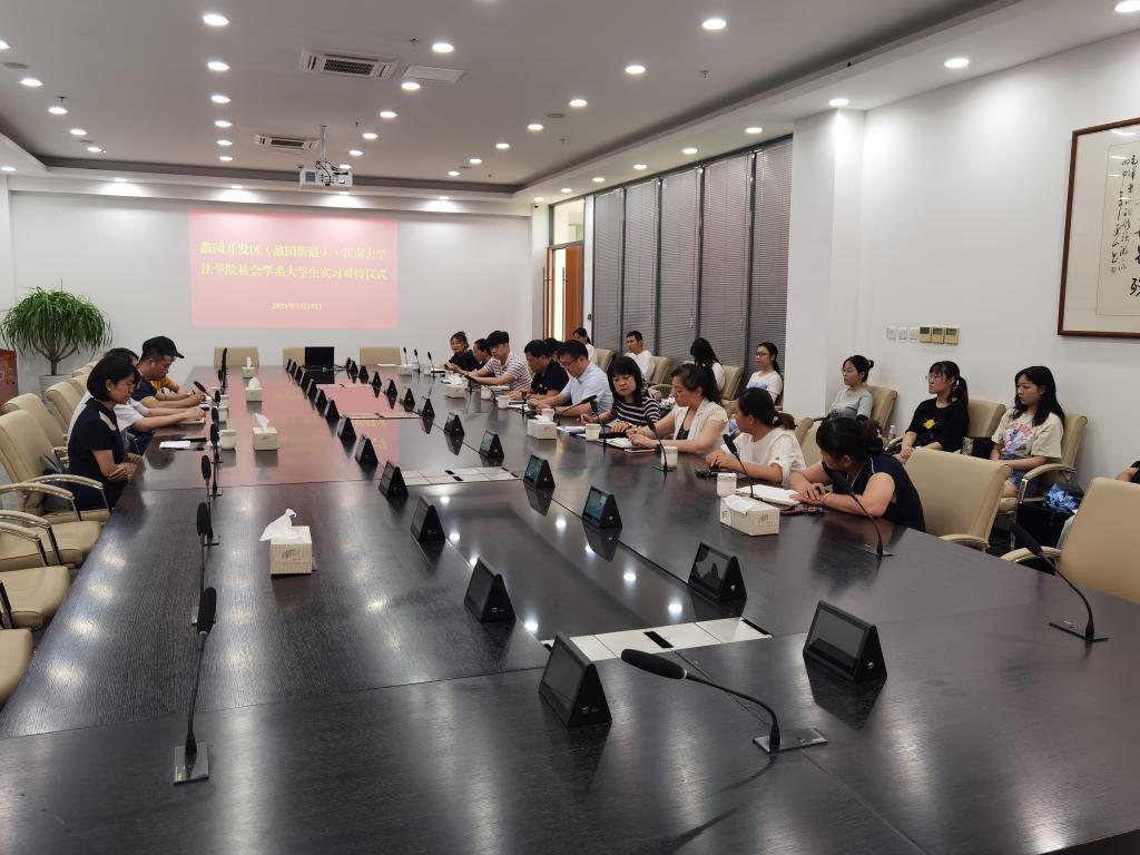 7月15日下午,在一片热烈的掌声中,蠡园开发区(蠡园街道)与英国威廉希尔公司官网社会学系大学生实习对接仪式在蠡园开发区管委会圆满结束。此次仪式由蠡园开发区政法和社会事业局局长成敏月主持,英国威廉希尔公司官网党委书记杨杰,社会学系主任汪冬冬,实习督导老师章程;蠡园开发区(蠡园街道)党工委副书记、管委会副主任、街道办事处主任钱锡贤,蠡园开发区行政审批局局长杨忠伟,各对接社区工作站站长及14名实习大学生参加了对接仪式。