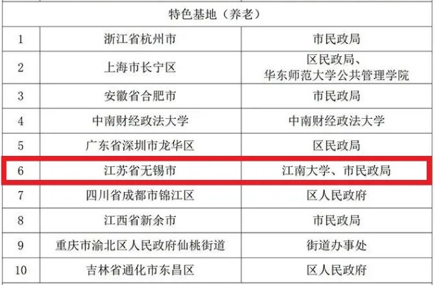 附:国家智能社会治理实验基地-特色基地(养老)入选名单
