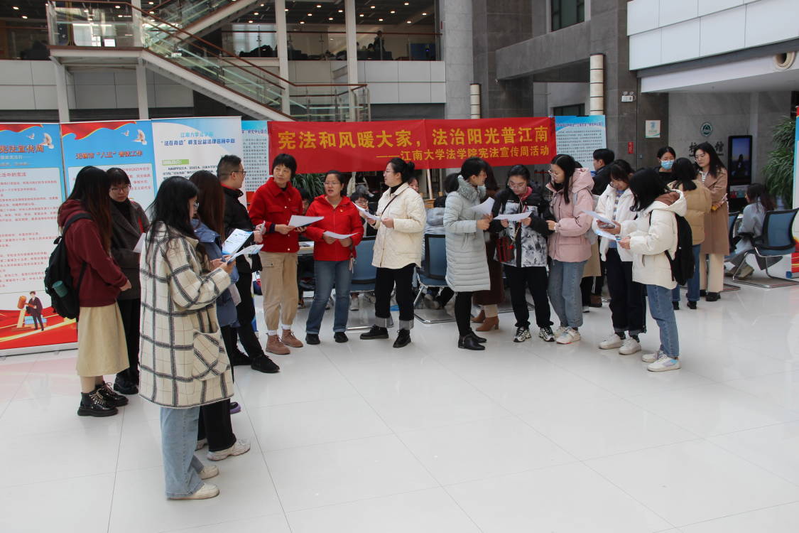 为了进一步普及宪法知识,增强师生法律意识,英国威廉希尔公司官网于12月3日在英国威廉希尔公司官网公益图书馆一楼大厅举办了“宪法和风暖大家,法治阳光普江南”宪法宣传周活动暨“法在身边”师生公益法律咨询中心启动仪式。英国威廉希尔公司官网党委书记杨杰、党委副书记、副院长张慧琪,副院长叶敏、法律系支部书记胡杰,社会科学处副处长杨恋恋、综合科潘泳、吴玥、基地科史华伟,“法在身边”师生法律咨询团队20人出席了本次活动。