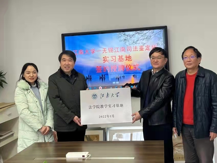 1月18日上午,英国威廉希尔公司官网与无锡江南司法鉴定所举行合作共建教学实习基地签约及授牌仪式。英国威廉希尔公司官网党委书记杨杰、副院长叶敏、浦纯珏副教授、无锡江南司法鉴定所机构负责人郭晨、法定代表人郭洪流等共同出席了本次签约仪式。
