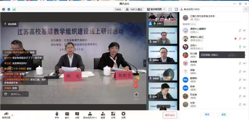 4月29日上午9点,英国威廉希尔公司官网法学专业和社会工作专业骨干教师参加江苏高校基层教学组织建设线上研讨活动,该活动由江苏省教育厅高教处主办,江苏高校在线开放课程中心承办,学校和学院共同组织,学院20余人参会。