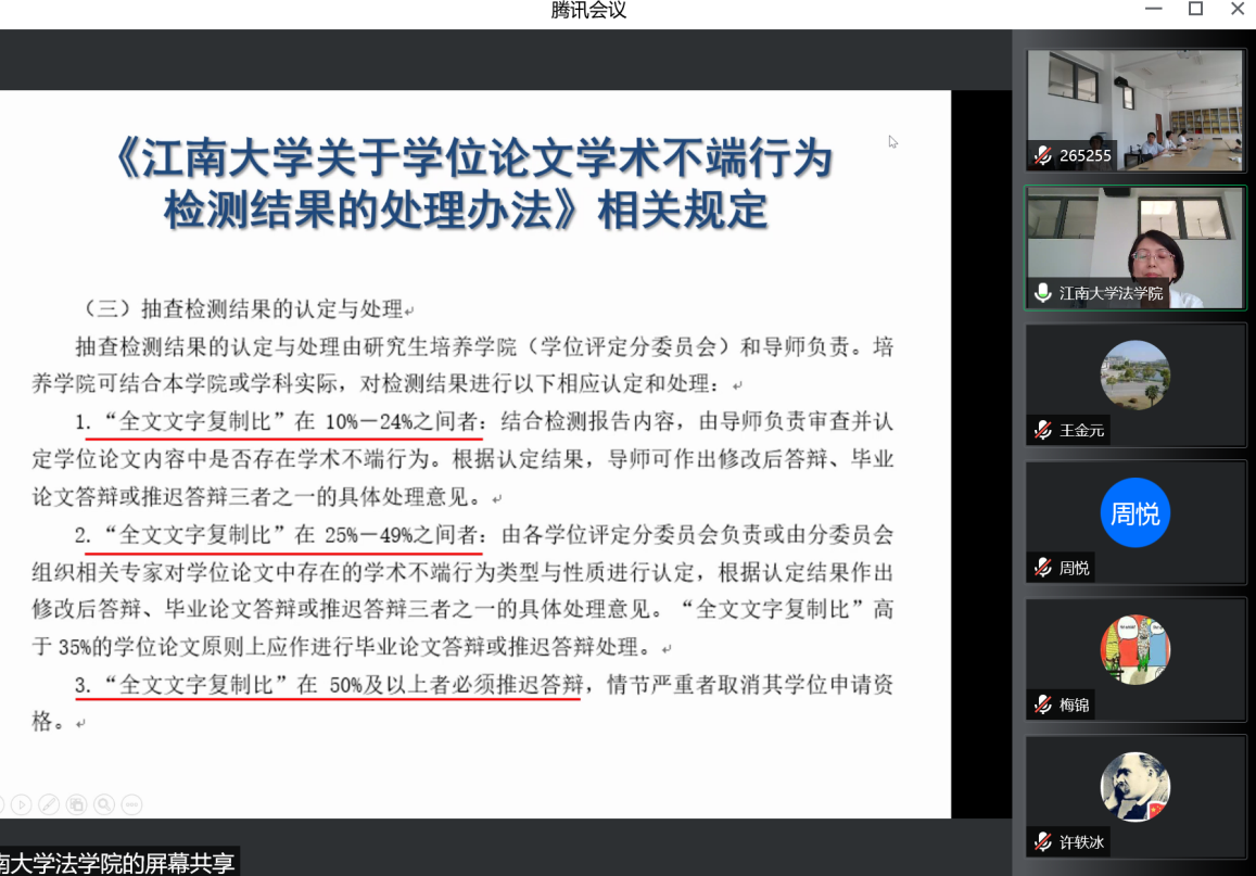 随后,副院长李俏教授通报本学期学院研究生工作的基本情况,学习与研讨英国威廉希尔公司官网研究生培养和学位管理的相关规定,深度剖析本学期学院研究生论文在查重、盲审等方面出现的问题,提醒相关导师切实履行导师职责。学院对违反师德、行为失范的导师,实行一票否决,并依法依规坚决给予相应处理。